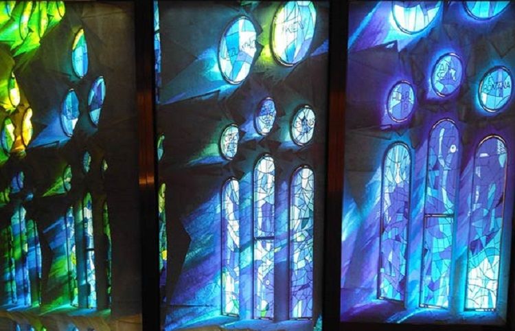 El genal arquitecto modernista Antoni Gaudí diseñó una planta en forma de cruz latina con cinco naves, extremadamente ricas en decoración y simbolismo.