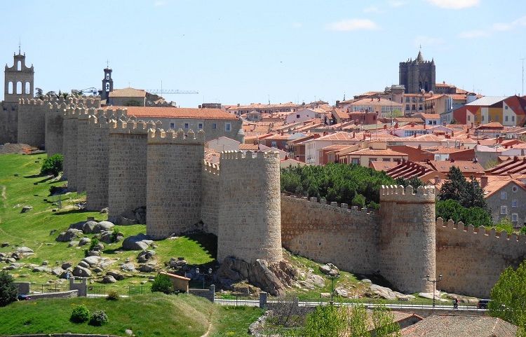 Los 2500 m de la muralla de Ávila, románica, del siglo XI, y sus 90 torreones, rodean la ciudad vieja y albergan gran parte de su tesoro monumental. Su asombrosa variedad de iglesias de estilos románico y gótico, suponen una de las más altas concentraciones de España de iglesias de dichos estilos.